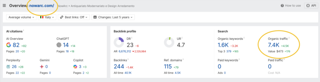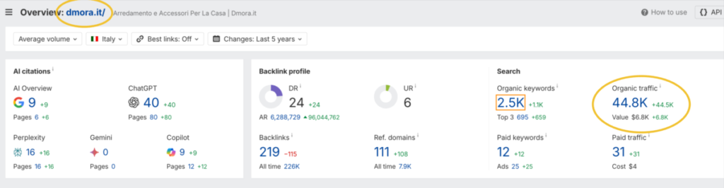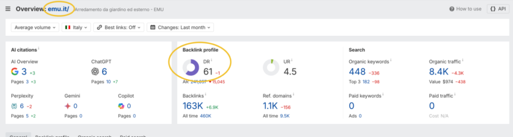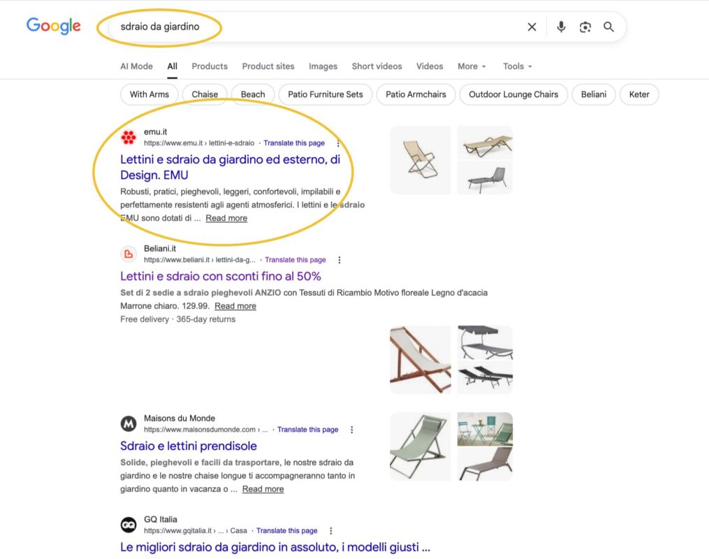 Example of important keyword: “Sdraio da giardino” (Garden lounge chairs) – 46,000 monthly searches.